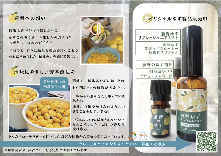 果皮の蒸留見学や蒸留水と中身はお持ち帰りいただき、ご自宅でお楽しみいただけます。